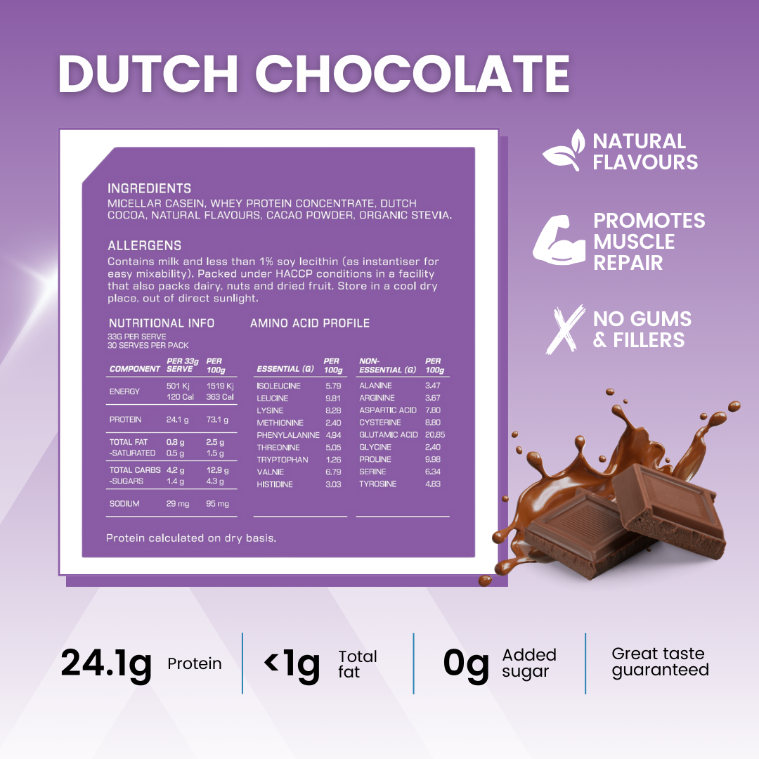 Each scoop contains 24 grams of slow release protein to help promote muscle repair and recovery and meet your daily protein needs.