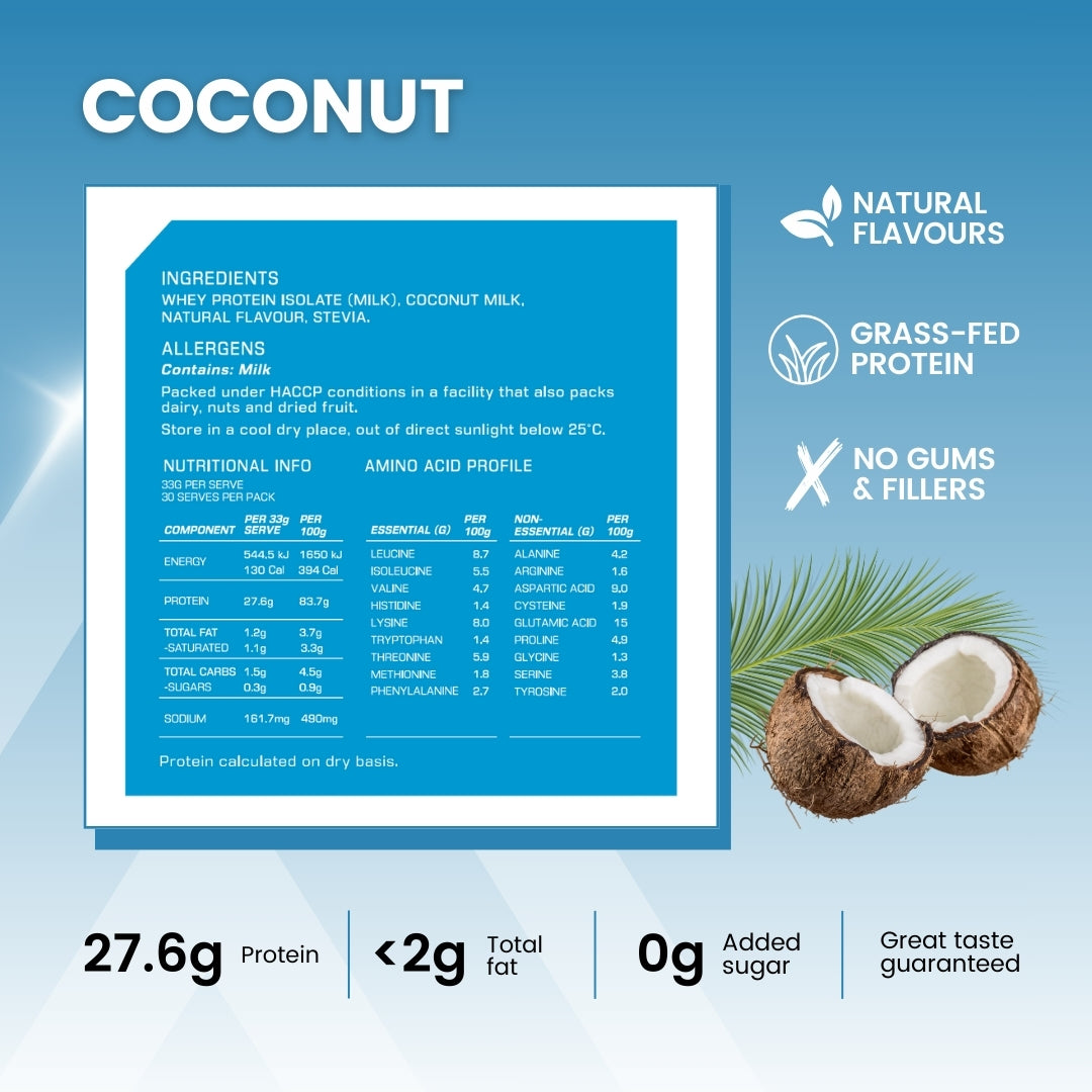 Whey Protein Isolate (Milk), Coconut Milk, Natural Flavour, Stevia