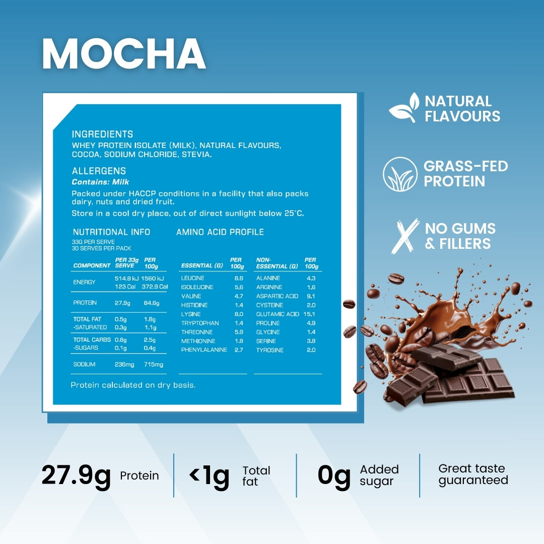 Whey Isolate is a premium form of whey protein, offers the highest protein content per serve and minimal fats and carbs. It is remarkably low in lactose (99% lactose free), making it an excellent choice for individuals with lactose intolerance who struggle with protein digestion.